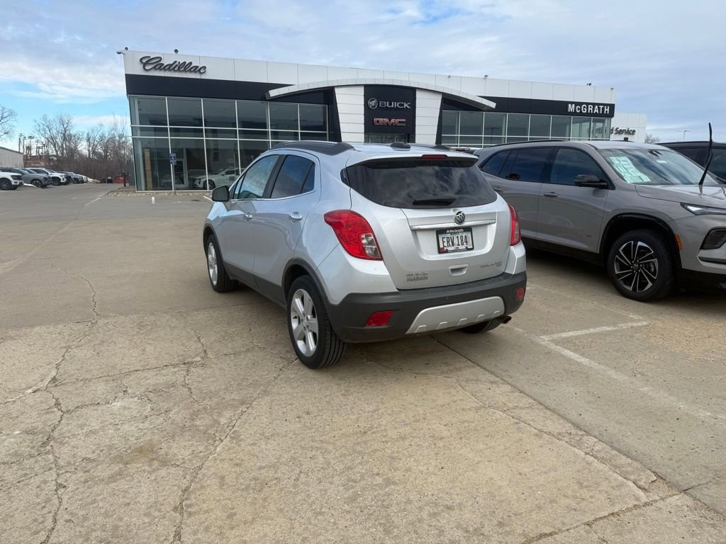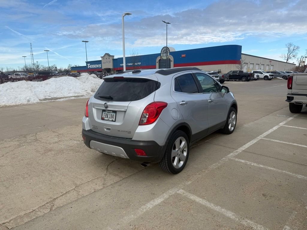 Discover the perfect blend of style, comfort, and performance with this 2016 Buick Encore Leather. This exceptional SUV is ready to elevate your driving experience and exceed your expectations. Clean Carfax Quicksilver Metallic exteriorBoasting a sophisticated Leather-Appointed Seat Trim, this Encore Leather offers unparalleled luxury and refinement. Indulge in the comfort of Heated Driver & Front Passenger Seats, ensuring you stay cozy no matter the weather. The Power Driver Seat and Power Passenger Seat provide the ultimate in customizable support, while the Memory Seat feature allows you to save your preferred settings.Elevate your commute with the Premium audio system featuring IntelliLink and SiriusXM Satellite Radio, providing endless entertainment options. Stay connected with the convenience of Remote Keyless Entry and Steering Wheel Mounted Audio Controls, allowing you to access your music, phone, and more with ease.Designed for versatility, the Encore Leather boasts a Split Folding Rear Seat, enabling you to accommodate your cargo needs with effortless flexibility. The Roof Rack Rails add an extra layer of utility, making it easy to transport your adventurous gear.Safety is paramount, and this Encore Leather delivers with a suite of advanced features. Enjoy the peace of mind of Electronic Stability Control, 4-Wheel Disc Brakes with ABS, and a Rear Vision Camera, all working together to keep you and your loved ones secure.Experience the exceptional driving dynamics of the ECOTEC 1.4L I4 SMPI DOHC Turbocharged engine, paired with the efficient 6-Speed Automatic Transmission and All-Wheel Drive system. Indulge in the confidence and control that this powertrain provides, while also benefiting from impressive fuel efficiency.Discover the perfect balance of style, technology, and capability in this 2016 Buick Encore Leather. Visit our showroom today and let us demonstrate how this exceptional SUV can enhance your driving experience.Prices may change at any time and are subject to availability and prior sale. Taxes, title, license fees, and a $180 documentation fee are not included. Pricing reflects all applicable rebates and incentives assigned to the dealer. Example payments are estimates; actual terms vary based on credit approval. APR and payment estimates apply to qualified buyers, not all buyers qualify for advertised rates. Factory cash incentives may not be combined with promotional APR. Fuel economy ratings and driving range figures are based on EPA estimates for new vehicles, and actual mileage and range may vary. Some in-stock vehicles may include a $1,295 Clear Guard Protection package By submitting your phone number online, you consent to occasional SMS or voice calls about our products and promotions; standard messaging rates may apply. Consult dealer for offer eligibility and other details. Factory MSRP is not the final advertised/asking price of the vehicle. Fuel economy figures are EPA estimates.
