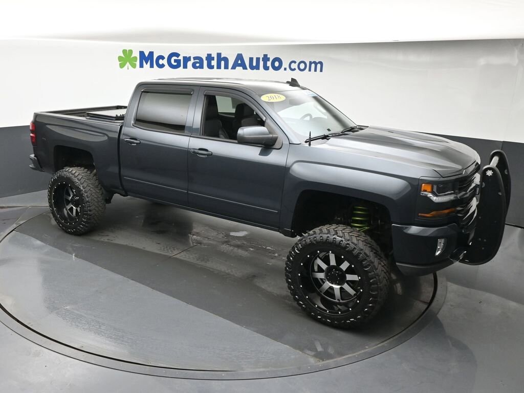 6-Speed Automatic Electronic with Overdrive, 4WD, Jet Black Cloth. Odometer is 45724 miles below market average! Priced below KBB Fair Purchase Price!Certification Program Details: McGrath SmartBuy Benefits: * 3 Month / 3,000 Mile Limited Powertrain Warranty * Free Vehicle History Report * 106 Point Full Vehicle Condition Inspection 2018 Chevrolet Silverado 1500 LT LT2 EcoTec3 5.3L V8 4WDWelcome to McGrath Auto, your destination for industry leading automotive experiences. We’re proud to deliver unmatched quality and service. With over 13,000 5-star Google reviews, our customers’ trust and satisfaction drive everything we do. Whether you’re buying, servicing, or building your fleet, experience why McGrath Auto is the top choice for all your automotive needs! We’ve got everything from tough trucks to fuel-sipping commuters and adventure-ready SUVs. Our vehicles go through a rigorous inspection process, and we offer multiple layers of certification based on the vehicle's age, mileage and inspection results. Whether you’re shopping for a brand-new ride or a budget-friendly pre-owned gem, we’re here to make the process easy, fun, and stress-free.Freight fees (not required by law) are included in advertised pricing. Tax, title, license, tags, electronic titling fees, a $180 documentation fee, and any other applicable dealer fees are not included and are the responsibility of the purchaser. Some in-stock vehicles may include a $1,295 Clear Guard Protection package that is pre-installed on select vehicles. MSRP (Manufacturer’s Suggested Retail Price) is provided for informational purposes only and is not the dealer’s advertised or selling price. Advertised pricing complies with manufacturer guidelines and may include all applicable rebates and incentives assigned to the dealer. Additional discounts or savings may be available please contact the dealership to confirm eligibility. All prices, payments, specifications, features, and availability are subject to change without notice and prior sale. Example payments are estimates for illustrative purposes only; actual terms vary based on credit approval, and not all buyers will qualify. Certain factory incentives may not be combined with promotional APR offers. All offers may require financing or leasing through approved lenders. While every reasonable effort is made to ensure accuracy, errors may occur. Please verify all information, including pricing, equipment, and availability, with a dealership representative prior to purchase. Some in-stock vehicles may include a $1,295 Clear Guard Protection package. Fuel economy and driving range figures are EPA estimates; actual mileage and range may vary. The dealer is not responsible for the accuracy of information provided by third-party websites or advertisements not generated by the dealership. By submitting your phone number online, you consent to receive occasional SMS or voice communications regarding products and promotions; standard messaging rates may apply.