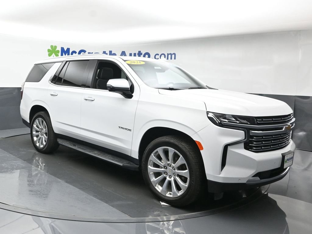 4WD, Jet Black Leather.Certification Program Details: McGrath SmartBuy Benefits: * 3 Month / 3,000 Mile Limited Powertrain Warranty * Free Vehicle History Report * 106 Point Full Vehicle Condition Inspection 2021 Chevrolet Tahoe Premier EcoTec3 5.3L V8 4WDWe're in the customer service business first, the car business second.- H.B. McGrath. Our goal is to offer our customers great vehicles at unmatched prices, but the car business isn't just about the product, it's about the people. Welcome to McGrath, your destination for award-winning automotive excellence! Wwe were voted CBJ's 2024 #1 Coolest Place to Work and winner of 2024 Best of the Best Auto Dealer, Auto Service, and Fleet Dealer. We’re proud to deliver unmatched quality and service. With over 11,000 5-star Google reviews, our customers’ trust and satisfaction drive everything we do. Whether you’re buying, servicing, or building your fleet, experience why McGrath is the top choice for all your automotive needs! If we aren't making our customers happy, we aren't in business. It's as simple as that, and we intend to deliver on the promise: Get More with McGrath.Prices may change at any time and are subject to availability and prior sale. Taxes, title, license fees, and a $180 documentation fee are not included. Pricing reflects all applicable rebates and incentives assigned to the dealer. Example payments are estimates; actual terms vary based on credit approval. APR and payment estimates apply to qualified buyers, not all buyers qualify for advertised rates. Factory cash incentives may not be combined with promotional APR. Fuel economy ratings and driving range figures are based on EPA estimates for new vehicles, and actual mileage and range may vary. Some in-stock vehicles may include a $1,295 Clear Guard Protection package By submitting your phone number online, you consent to occasional SMS or voice calls about our products and promotions; standard messaging rates may apply. Consult dealer for offer eligibility and other details. Factory MSRP is not the final advertised/asking price of the vehicle. Fuel economy figures are official EPA estimates and clearly labeled as such.