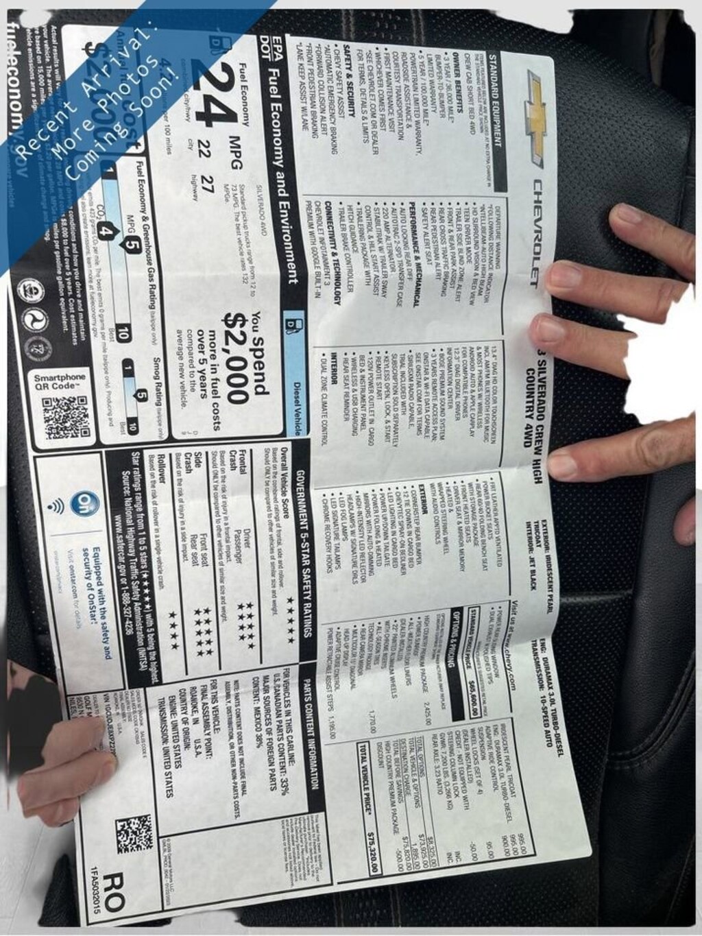 Beneath the stunning Iridescent Pearl Tricoat exterior lies a powerhouse equipped with a 3.0L I-6 Diesel Turbocharged (Duramax) engine, delivering impressive fuel efficiency without sacrificing the strength and towing capacity you demand. Paired with a smooth-shifting 10-speed automatic transmission and 4-wheel drive, this Silverado High Country is ready to tackle any task with ease.