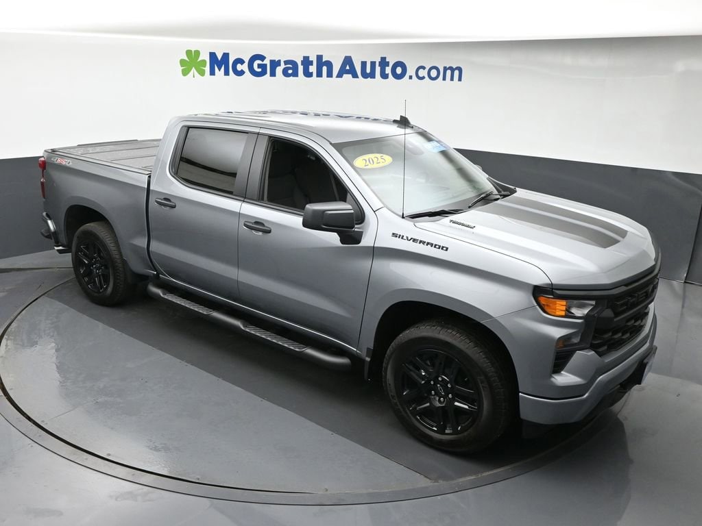 Clean CARFAX.Certification Program Details: McGrath Certified Benefits: * Free Vehicle History Report * 106 Point Full Vehicle Condition Inspection * Like it or Exchange it! Three Day Policy 2025 Chevrolet Silverado 1500 Custom 2.7L I4 Turbocharged DOHC 16V LEV3-SULEV30 310hp 4WDWelcome to McGrath Chevy, your destination for award-winning automotive experiences. We were voted CBJ's 2024 #1 Coolest Place to Work and winner of 2024 Best of the Best Auto Dealer, Auto Service, and Fleet Dealer. We’re proud to deliver unmatched quality and service. With over 11,000 5-star Google reviews, our customers’ trust and satisfaction drive everything we do. Whether you’re buying, servicing, or building your fleet, experience why McGrath Chevy is the top choice for all your automotive needs! We’ve got everything from tough trucks to fuel-sipping commuters and adventure-ready SUVs. Our vehicles go through a rigorous inspection process, and we offer multiple layers of certification based on the vehicle's age, mileage and inspection results. Whether you’re shopping for a brand-new ride or a budget-friendly pre-owned gem, we’re here to make the process easy, fun, and stress-free.Prices may change at any time and are subject to availability and prior sale. Taxes, title, license fees, and a $180 documentation fee are not included. Payments shown are estimates; actual terms vary by buyer and credit approval. Dealer is not responsible for errors in pricing or vehicle details, information is believed accurate but not guaranteed. Photos are for illustration only confirm details with the dealer. Fuel economy ratings and driving range figures are based on EPA estimates for new vehicles, and actual mileage and range may vary. By submitting your phone number, you consent to occasional SMS or calls about our products and promotions; standard messaging rates apply. See dealer for details. Fuel economy figures are official EPA estimates and clearly labeled as such.