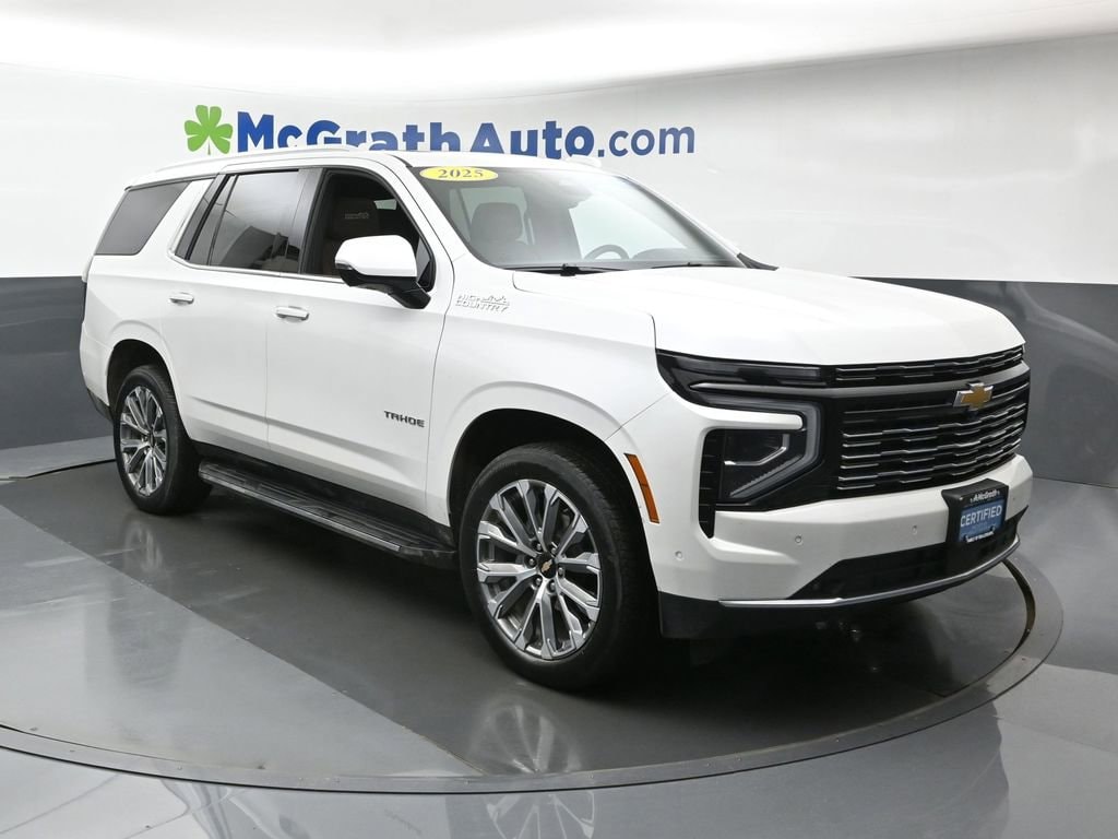 4WD, Jet Black/Mocha Leather. CARFAX One-Owner. Clean CARFAX.Certification Program Details: GM Certified Benefits: * Factory-Backed 6-Year/100,000-Mile Powertrain Limited Warranty * Factory-Backed 12-month/12,000-Mile Bumper-to-Bumper Limited Warranty * Roadside Assistance * 172-Point Inspection 2025 Chevrolet Tahoe High Country EcoTec3 6.2L V8 4WDWe're in the customer service business first, the car business second.- H.B. McGrath. Our goal is to offer our customers great vehicles at unmatched prices, but the car business isn't just about the product, it's about the people. Welcome to McGrath, your destination for award-winning automotive excellence! Wwe were voted CBJ's 2024 #1 Coolest Place to Work and winner of 2024 Best of the Best Auto Dealer, Auto Service, and Fleet Dealer. We’re proud to deliver unmatched quality and service. With over 11,000 5-star Google reviews, our customers’ trust and satisfaction drive everything we do. Whether you’re buying, servicing, or building your fleet, experience why McGrath is the top choice for all your automotive needs! If we aren't making our customers happy, we aren't in business. It's as simple as that, and we intend to deliver on the promise: Get More with McGrath.Prices may change at any time and are subject to availability and prior sale. Taxes, title, license fees, and a $180 documentation fee are not included. Pricing reflects all applicable rebates and incentives assigned to the dealer. Example payments are estimates; actual terms vary based on credit approval. APR and payment estimates apply to qualified buyers, not all buyers qualify for advertised rates. Factory cash incentives may not be combined with promotional APR. Fuel economy ratings and driving range figures are based on EPA estimates for new vehicles, and actual mileage and range may vary. Some in-stock vehicles may include a $1,295 Clear Guard Protection package By submitting your phone number online, you consent to occasional SMS or voice calls about our products and promotions; standard messaging rates may apply. Consult dealer for offer eligibility and other details. Factory MSRP is not the final advertised/asking price of the vehicle. Fuel economy figures are official EPA estimates and clearly labeled as such.