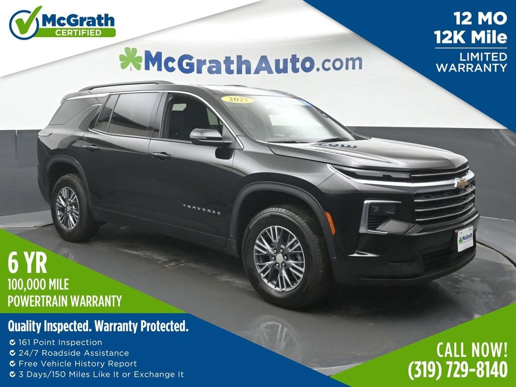 Discover the 2025 Chevrolet Traverse LT 2LT, a versatile and well-equipped SUV that's ready to elevate your driving experience. With its sleek black exterior and a host of impressive features, this Traverse is the perfect blend of style and substance.- Clean Carfax- LT JET BLACK, EVOTEX SEAT TRIMSlip into the driver's seat and be captivated by the Traverse's advanced technology. Enjoy the convenience of the Navigation System, the clarity of the 6-Speaker Audio System, and the comfort of Automatic Temperature Control. Stay connected with Apple CarPlay and Android Auto, while the OnStar Emergency Communication System provides added peace of mind.Conquer the road with confidence, thanks to the Traverse's powerful 2.5L DOHC engine and seamless 8-Speed Automatic transmission with AWD. Achieve an impressive balance of performance and efficiency, with an EPA-estimated 19 mpg in the city and 24 mpg on the highway.Designed with your comfort and convenience in mind, the Traverse LT 2LT boasts a host of premium features. Relax in the heated front seats, enjoy the convenience of the Power Liftgate, and let the Fully Automatic Headlights guide your way. The Traverse's spacious interior and split-bench third-row seating offer ample room for your family and cargo.This Traverse is more than just a vehicle it's a gateway to a lifestyle of adventure and convenience. With its exceptional safety features, including Dual Front Impact Airbags, Electronic Stability Control, and a Rear Anti-Roll Bar, you can drive with confidence.Certified by Chevrolet, this 2025 Traverse LT 2LT is backed by the reassurance of a thorough inspection and a comprehensive warranty. Experience the difference that this exceptional SUV can make in your daily life.Prices may change at any time and are subject to availability and prior sale. Taxes, title, license fees, and a $180 documentation fee are not included. Pricing reflects all applicable rebates and incentives assigned to the dealer. Example payments are estimates; actual terms vary based on credit approval. APR and payment estimates apply to qualified buyers, not all buyers qualify for advertised rates. Factory cash incentives may not be combined with promotional APR. Fuel economy ratings and driving range figures are based on EPA estimates for new vehicles, and actual mileage and range may vary. Some in-stock vehicles may include a $1,295 Clear Guard Protection package By submitting your phone number online, you consent to occasional SMS or voice calls about our products and promotions; standard messaging rates may apply. Consult dealer for offer eligibility and other details. Factory MSRP is not the final advertised/asking price of the vehicle. Fuel economy figures are EPA estimates.