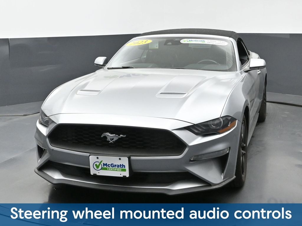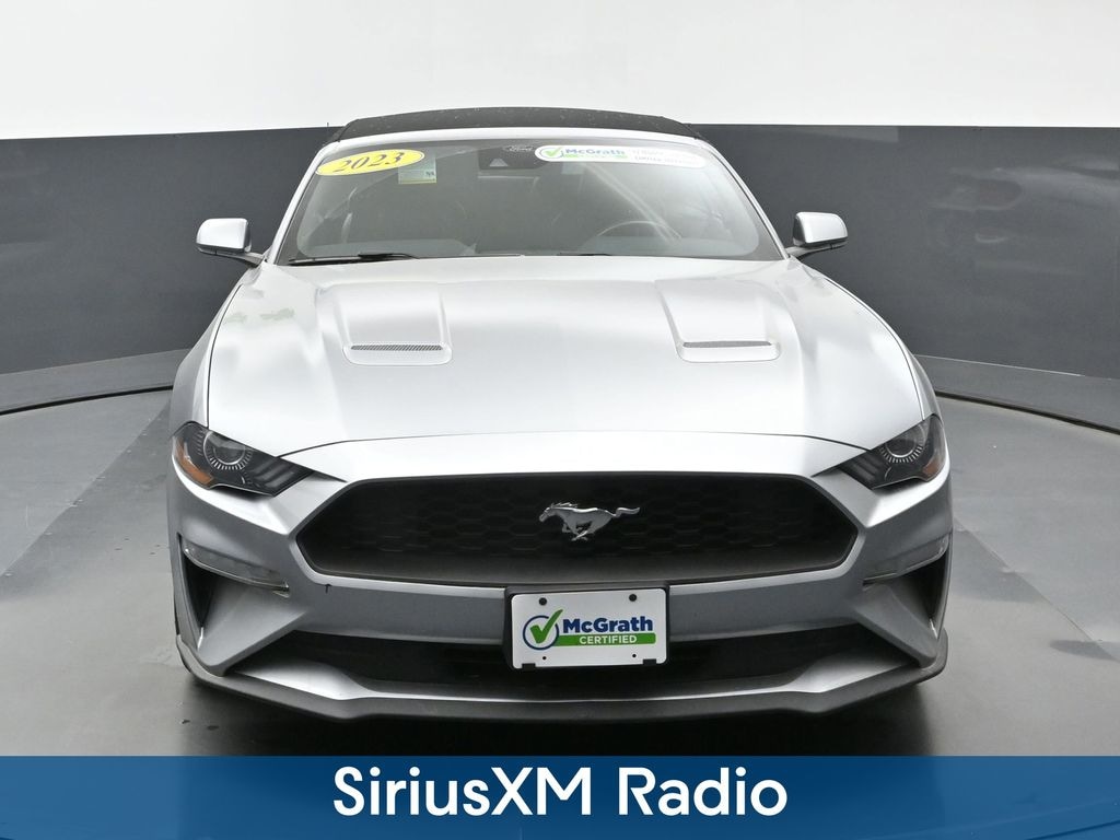 Adorned in a sleek Silver exterior, this Mustang EcoBoost Premium exudes confidence and style. The 18-inch Machined-Face Aluminum wheels and power convertible roof add to the vehicle's dynamic presence, while the Rear Parking Sensors and Exterior Parking Camera Rear provide added convenience and peace of mind.