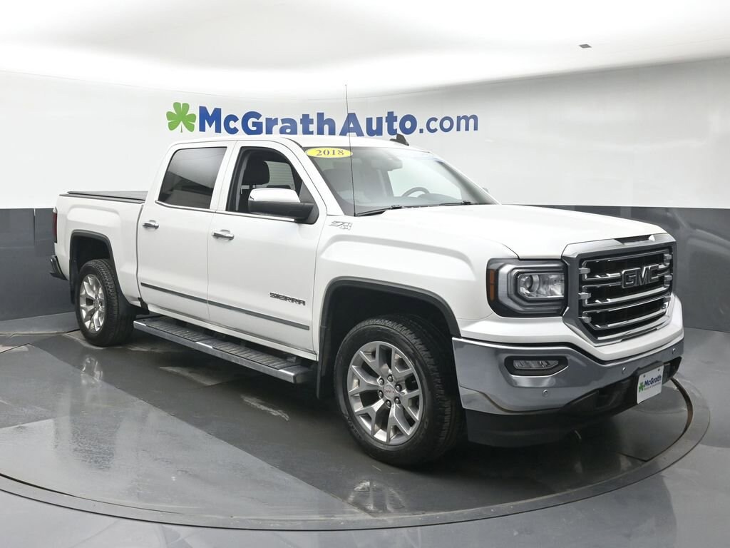 Discover the ultimate driving experience with this exceptional 2018 GMC Sierra 1500 SLT. Boasting a powerful EcoTec3 5.3L V8 engine and 4-wheel drive, this truck is ready to tackle any terrain with confidence.- Clean Carfax- SLT Premium Package with Bose audio system and 20 polished aluminum wheels- SLT Preferred Package with front and rear park assist, heated steering wheel, and sliding rear window- Heated and ventilated perforated leather-appointed front bucket seats- Protection Package with all-weather floor liners and splash guards- Off-Road Suspension Package with Z71 chrome side fender emblems, Rancho shocks, and Hill Descent ControlThis Sierra SLT is packed with premium features that elevate your driving experience. The Bose premium audio system delivers a concert-hall quality sound, while the heated and ventilated front seats provide unparalleled comfort, no matter the weather. The integrated trailer brake controller and 4WD system ensure you're ready to tow and tackle any adventure.Exterior-wise, the White Frost Tricoat paint gleams in the sunlight, complemented by the chrome exterior accents and 20-inch polished aluminum wheels. The 6-inch rectangular chrome tubular assist steps make it easy to get in and out, while the LED cargo box lighting and taillamps with signature provide both style and functionality.Inside, the cabin is appointed with premium materials and thoughtful design. The dual-zone automatic climate control, power-adjustable pedals, and wireless charging keep you comfortable and connected. The 4.2-inch diagonal color driver information center and GMC Infotainment System with SiriusXM provide you with all the information and entertainment you need.Whether you're hauling heavy loads, towing your toys, or simply enjoying the open road, this 2018 GMC Sierra 1500 SLT is the perfect companion. Experience the power, capability, and luxury that make this truck a true standout in its class. Visit our showroom today to take this exceptional vehicle for a test drive and discover why it's the perfect choice for your next adventure.Prices may change at any time and are subject to availability and prior sale. Taxes, title, license fees, and a $180 documentation fee are not included. Pricing reflects all applicable rebates and incentives assigned to the dealer. Example payments are estimates; actual terms vary based on credit approval. APR and payment estimates apply to qualified buyers, not all buyers qualify for advertised rates. Factory cash incentives may not be combined with promotional APR. Fuel economy ratings and driving range figures are based on EPA estimates for new vehicles, and actual mileage and range may vary. Some in-stock vehicles may include a $1,295 Clear Guard Protection package By submitting your phone number online, you consent to occasional SMS or voice calls about our products and promotions; standard messaging rates may apply. Consult dealer for offer eligibility and other details. Factory MSRP is not the final advertised/asking price of the vehicle. Fuel economy figures are EPA estimates.