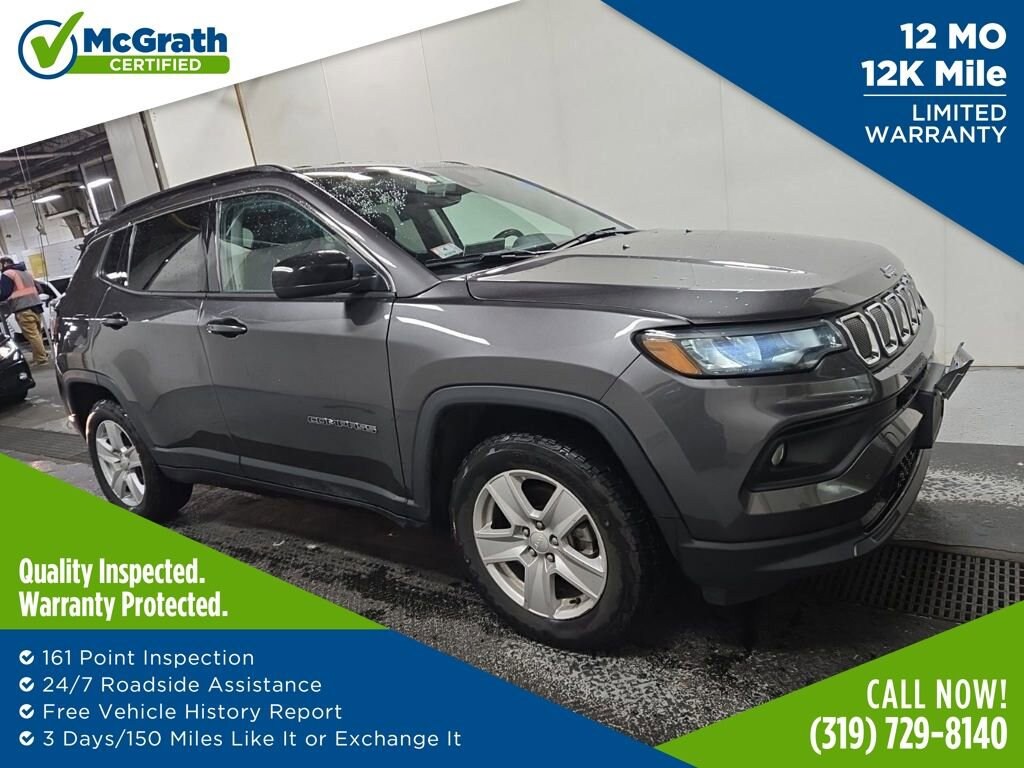 22/30 City/Highway MPGCertification Program Details: McGrath Certified Benefits: * Free Vehicle History Report * 106 Point Full Vehicle Condition Inspection * Like it or Exchange it! Three Day Policy 2022 Jeep Compass Latitude 2.4L I4 4WDWelcome to McGrath Chevy, your destination for award-winning automotive experiences. We were voted CBJ's 2024 #1 Coolest Place to Work and winner of 2024 Best of the Best Auto Dealer, Auto Service, and Fleet Dealer. We’re proud to deliver unmatched quality and service. With over 11,000 5-star Google reviews, our customers’ trust and satisfaction drive everything we do. Whether you’re buying, servicing, or building your fleet, experience why McGrath Chevy is the top choice for all your automotive needs! We’ve got everything from tough trucks to fuel-sipping commuters and adventure-ready SUVs. Our vehicles go through a rigorous inspection process, and we offer multiple layers of certification based on the vehicle's age, mileage and inspection results. Whether you’re shopping for a brand-new ride or a budget-friendly pre-owned gem, we’re here to make the process easy, fun, and stress-free.Prices may change at any time and are subject to availability and prior sale. Taxes, title, license fees, and a $180 documentation fee are not included. Payments shown are estimates; actual terms vary by buyer and credit approval. Dealer is not responsible for errors in pricing or vehicle details, information is believed accurate but not guaranteed. Photos are for illustration only confirm details with the dealer. Fuel economy ratings and driving range figures are based on EPA estimates for new vehicles, and actual mileage and range may vary. By submitting your phone number, you consent to occasional SMS or calls about our products and promotions; standard messaging rates apply. See dealer for details. Fuel economy figures are official EPA estimates and clearly labeled as such.