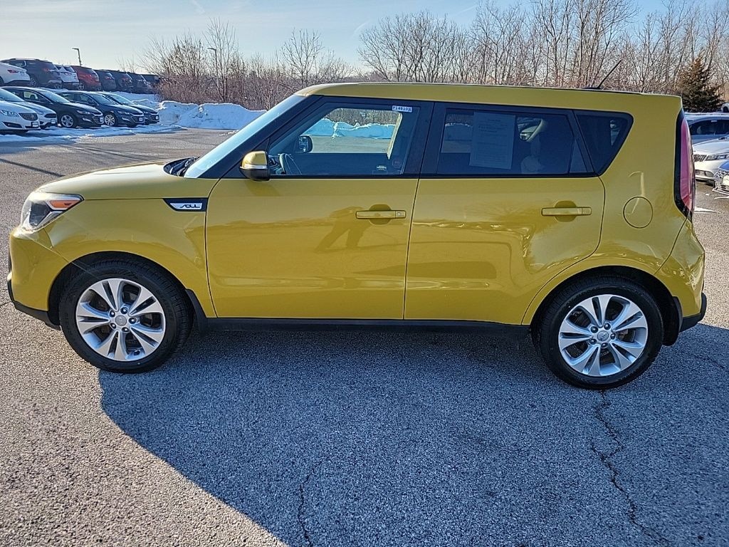 Boasting a sleek and eye-catching exterior in a vibrant Yellow hue, this 2014 Kia Soul Plus commands attention wherever it goes. Complemented by its alluring 17" Alloy Wheels, this vehicle exudes a sense of refined sophistication that is sure to turn heads.