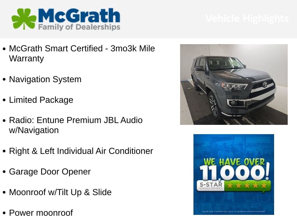 This 4Runner Limited is packed with premium features that will elevate your driving experience. Enjoy the convenience of the power moonroof, the comfort of ventilated front seats, and the added utility of the silver roof rails. The Entune Premium JBL audio system with navigation will keep you connected and entertained on the road.